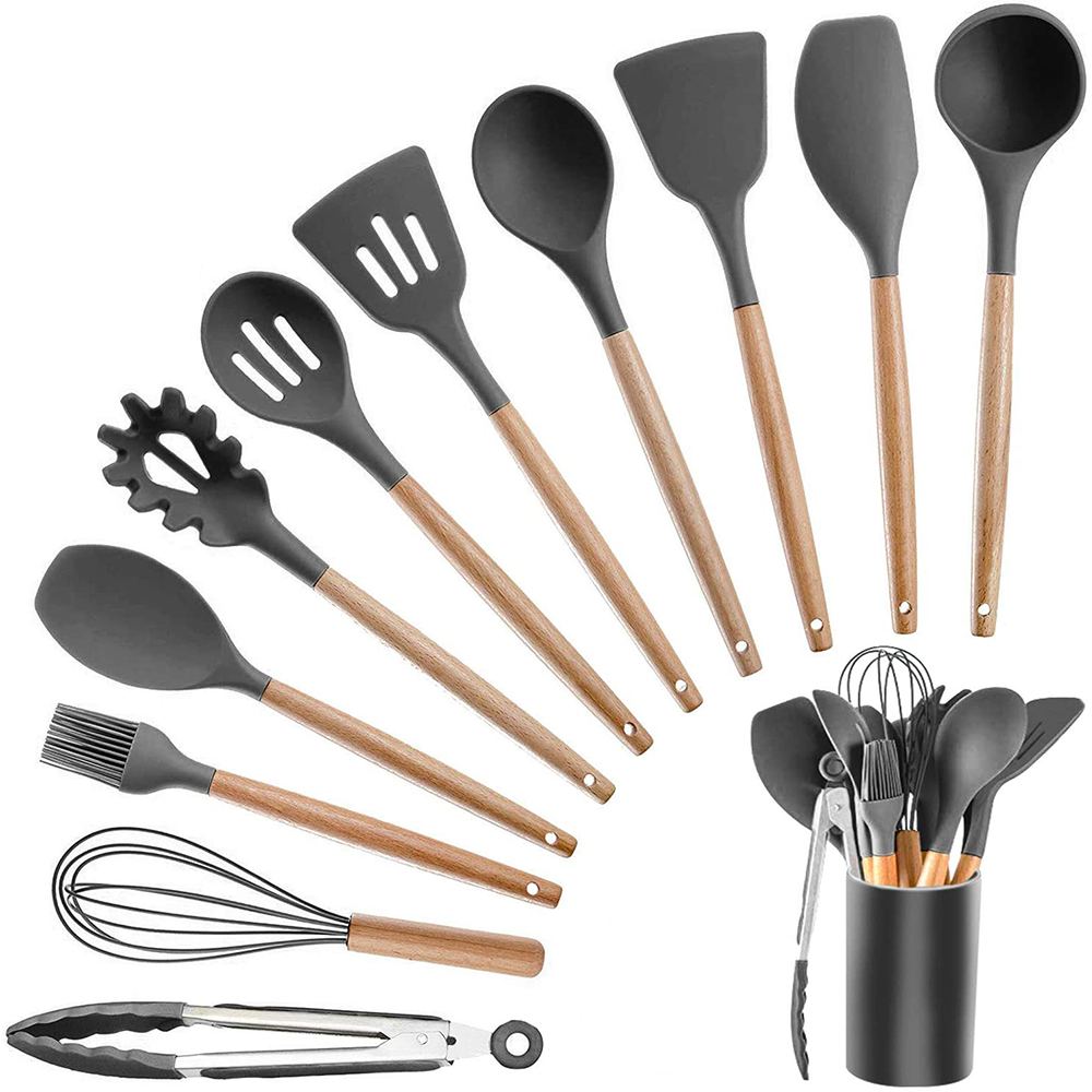 SET 12 PCS DI UTENSILI DA CUCINA IN SILICONE LEGNO